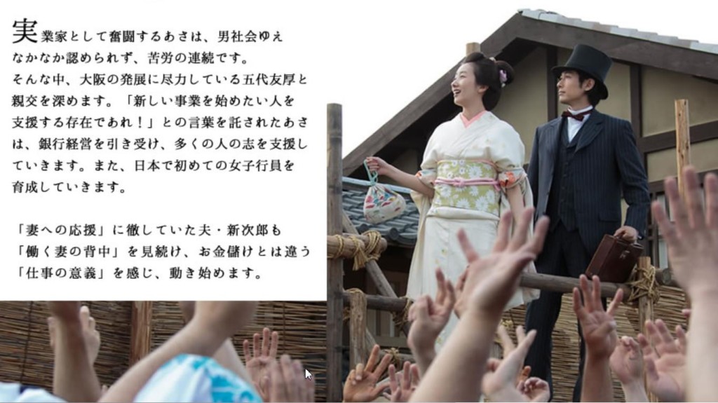 同時に、村上さんの講演も行われました。演題は『NHK朝ドラ「あさが来た」よもやま話』です。講師の要望で、「ちいき新聞」、我孫子版に掲載された内容を一部を省いて、紹介します。